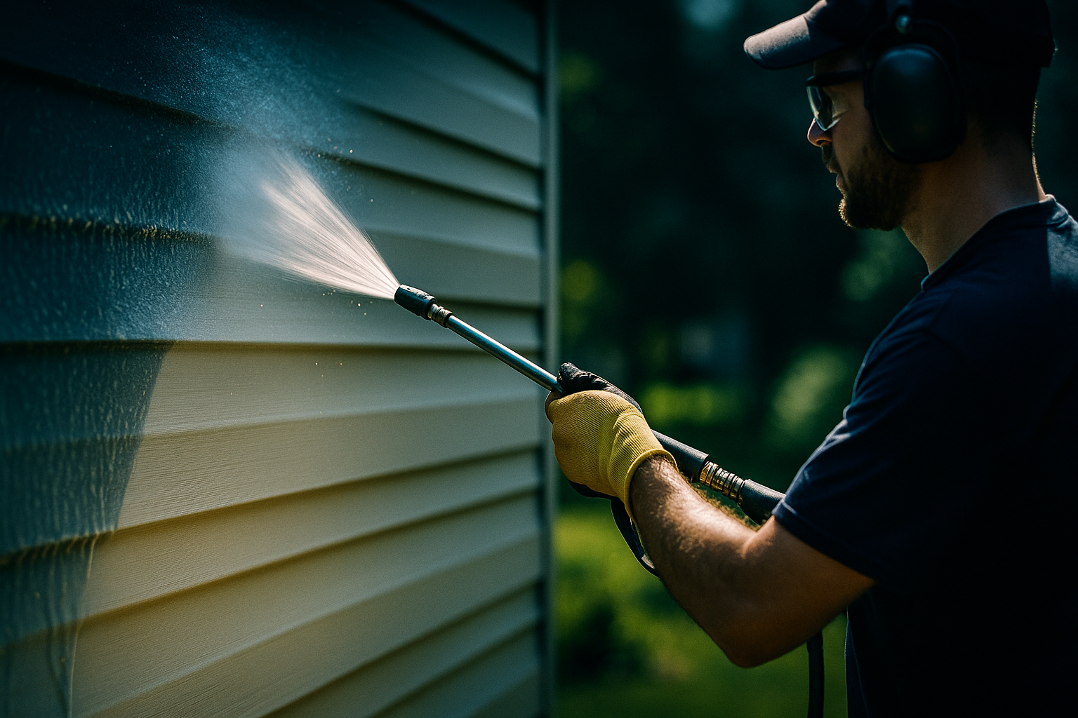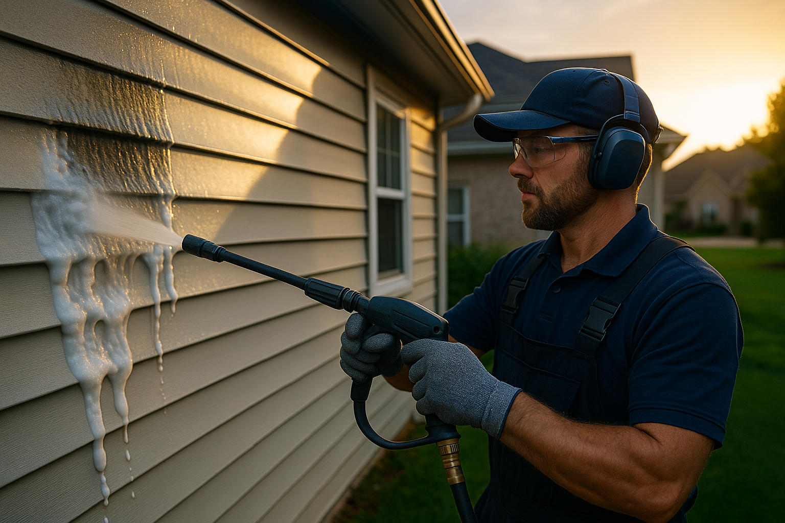 Low pressure + biodegradable detergents clean siding, brick, and roofs without scarring finishes.