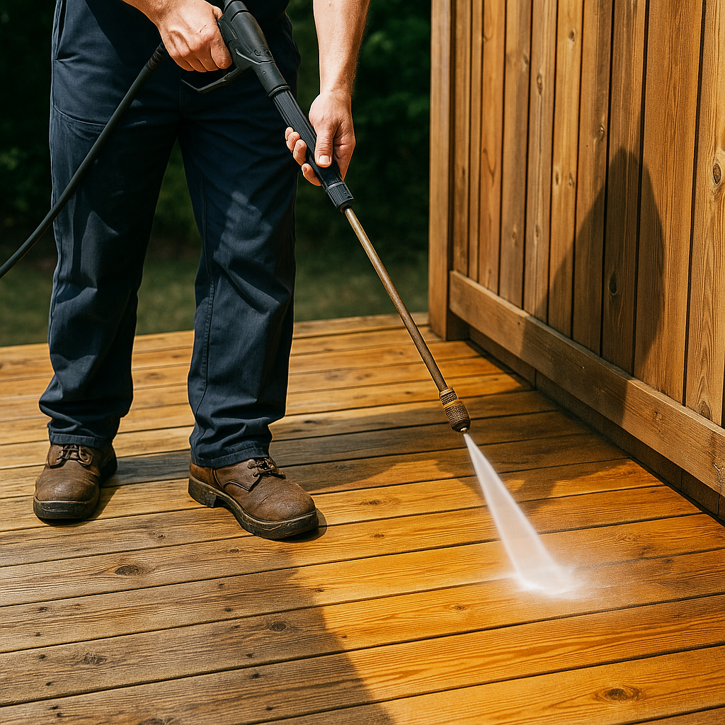 Lift grime and gray weathering from wood, stone, and pavers. Optional brightening and sealant to protect against future buildup.
